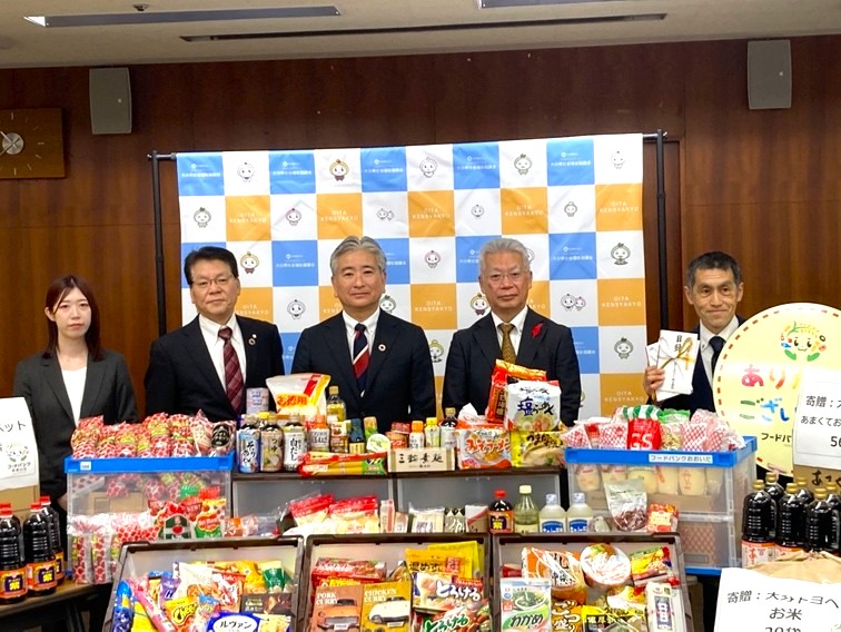 令和7年11月、大分トヨペット株式会社様から「県内のこども食堂の支援」としてご寄附と食料品のご寄贈をいただきました。